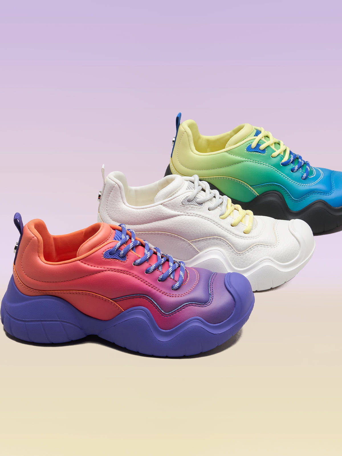 ANDREAのスポーティなソールと遊び心のあるカラーバリエーションは、リラックスした日の装いにクールさをプラス。オーバーサイズのジョガーパンツやフィット感のあるドレスと合わせれば、シューズが主役に。