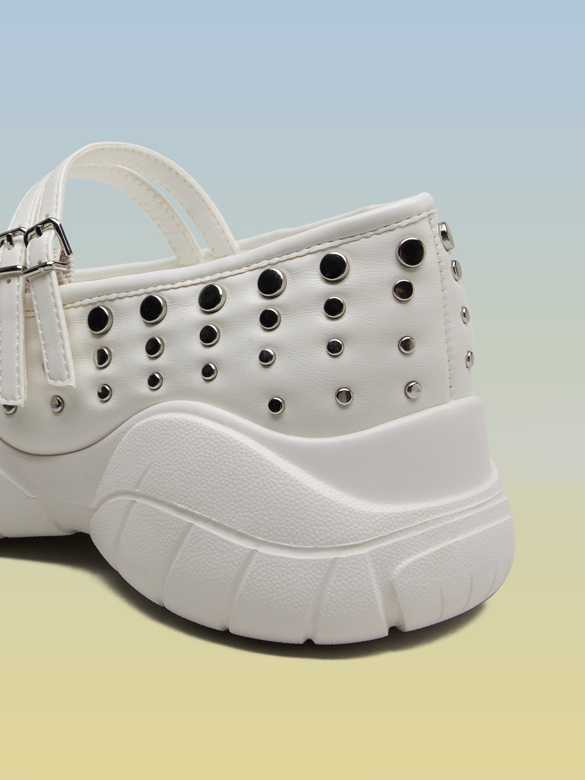 スニーカー×バレエシューズのすっきりしたシルエットはそのままに、スタッズをあしらって、ほんの少しスパイスをプラスしました。