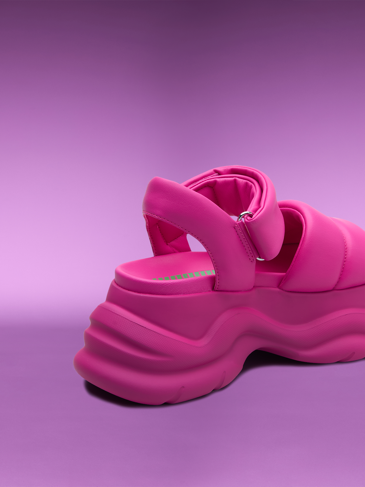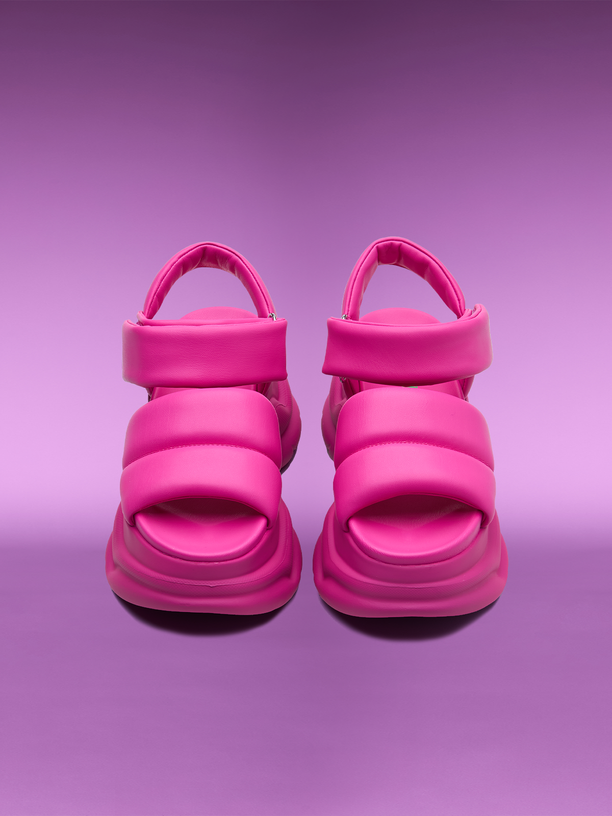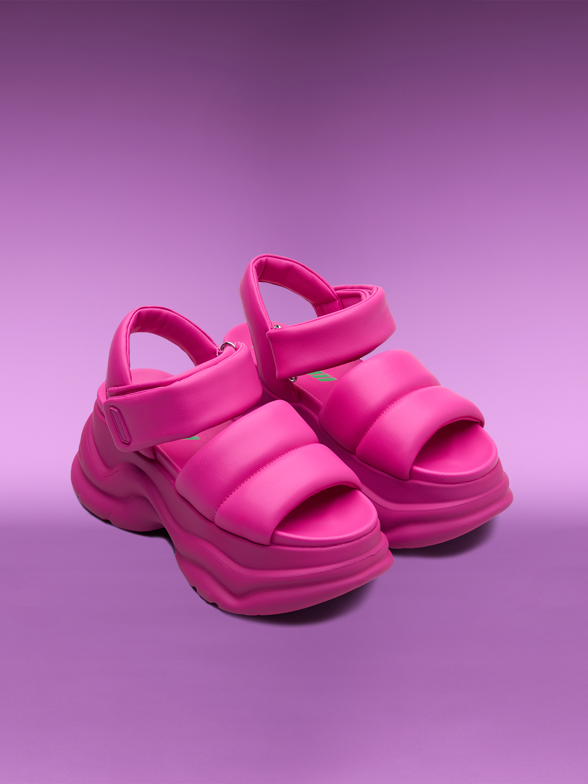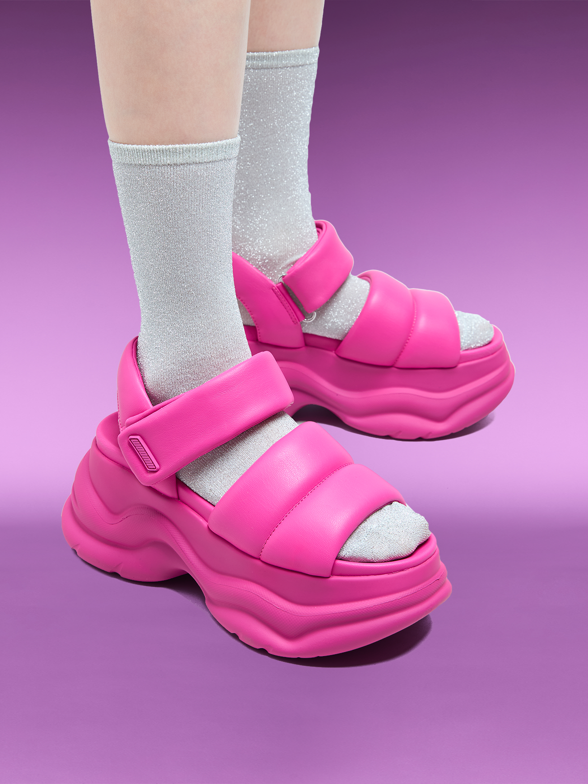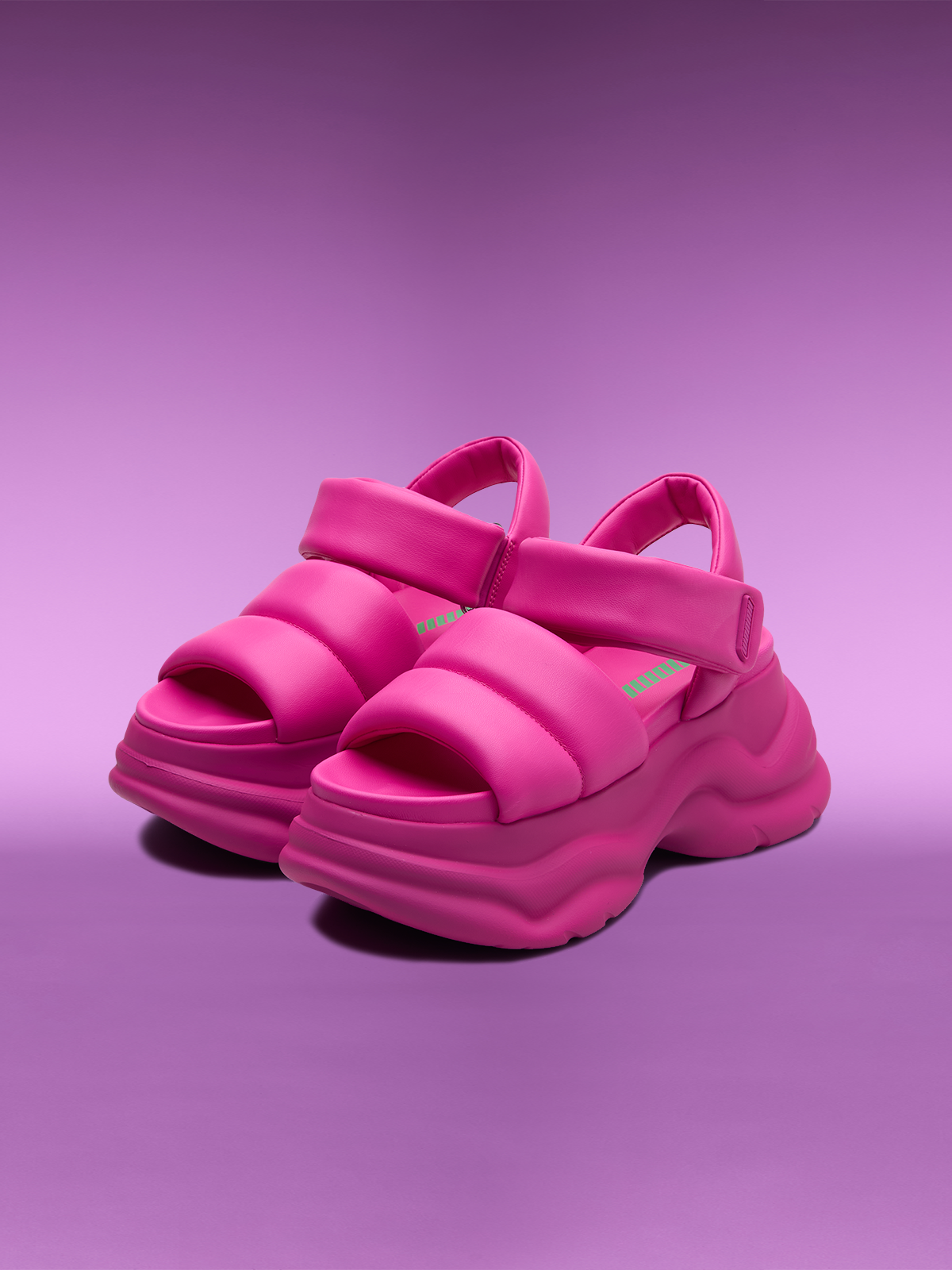 - スポーティなパッド入りフラットフォームサンダル
