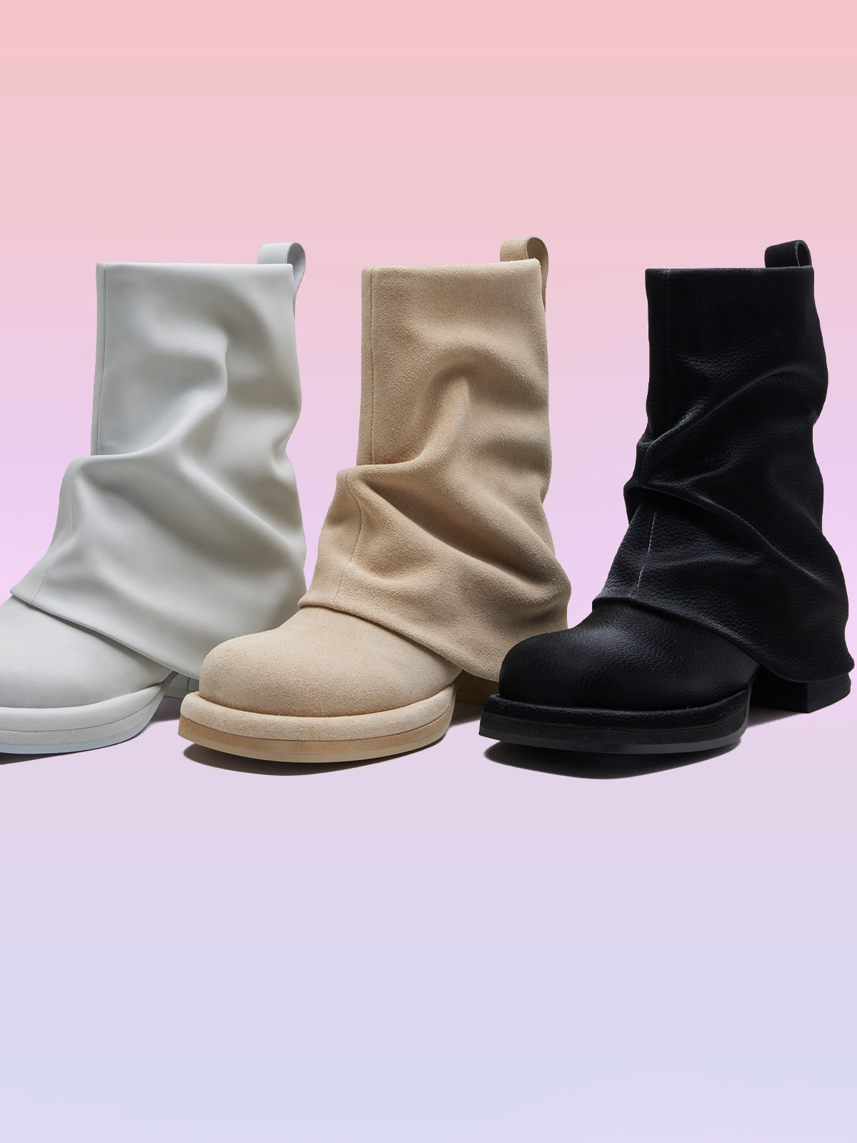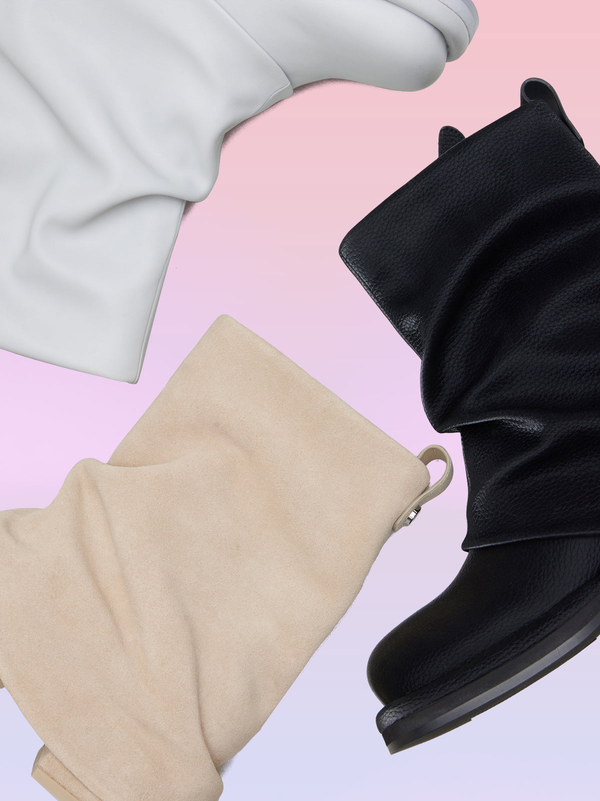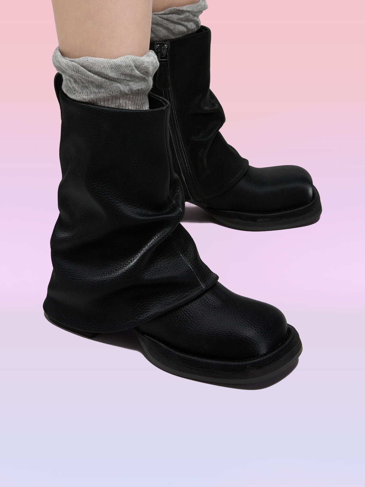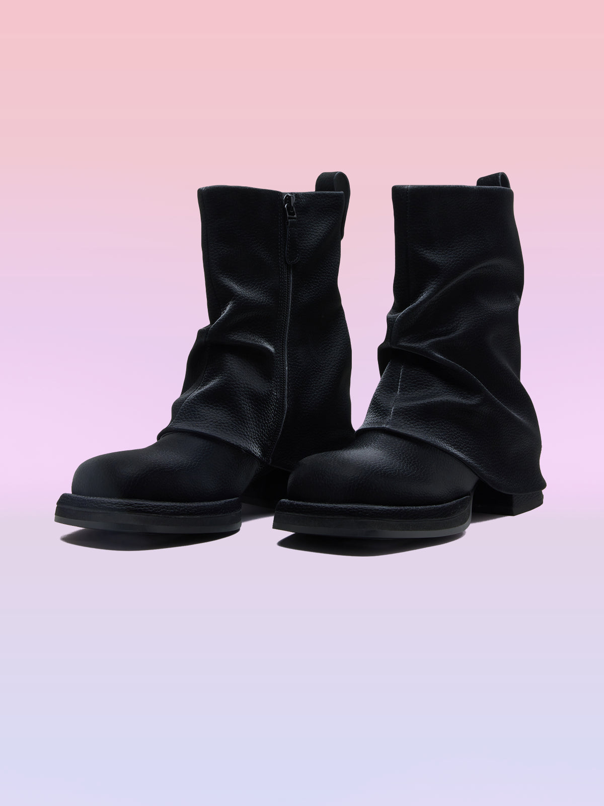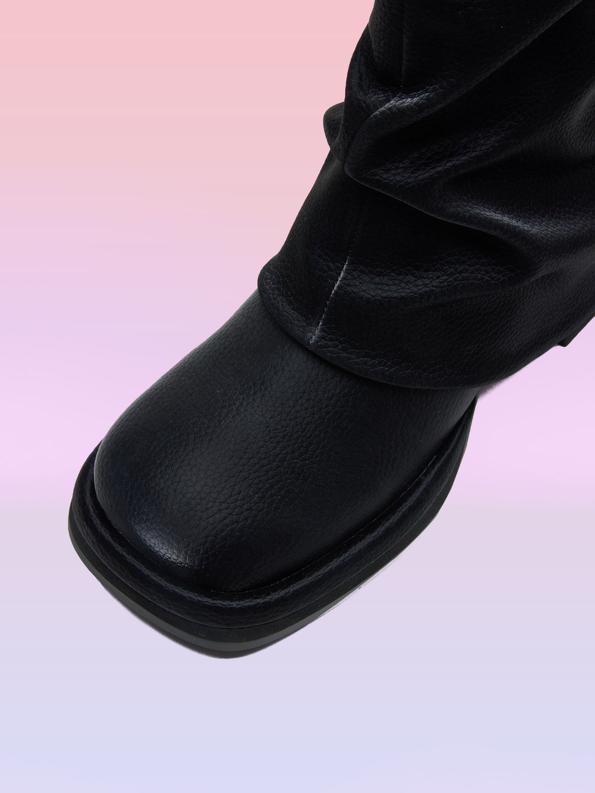 - アッパーにドレープPUレザーオーバーレイ