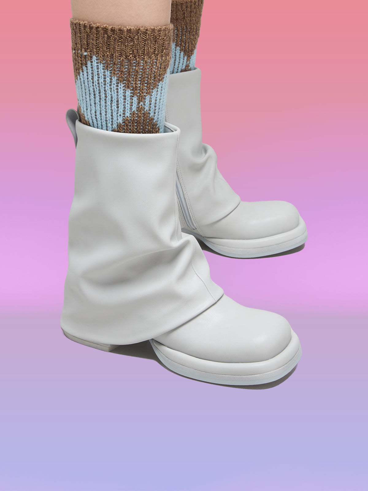 BAMBIのブロックヒールとスクエアトゥは、甘さと大人っぽさを両立。ロングスカートやソックス、あるいはかっちりとしたシルエットと合わせれば、ミニマルで洗練された雰囲気に。