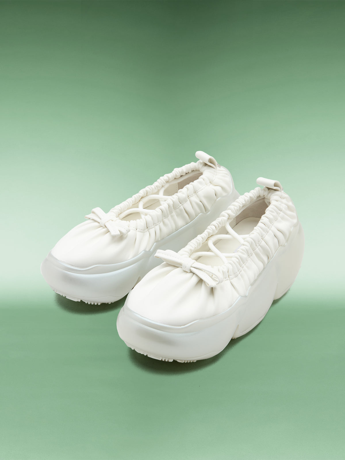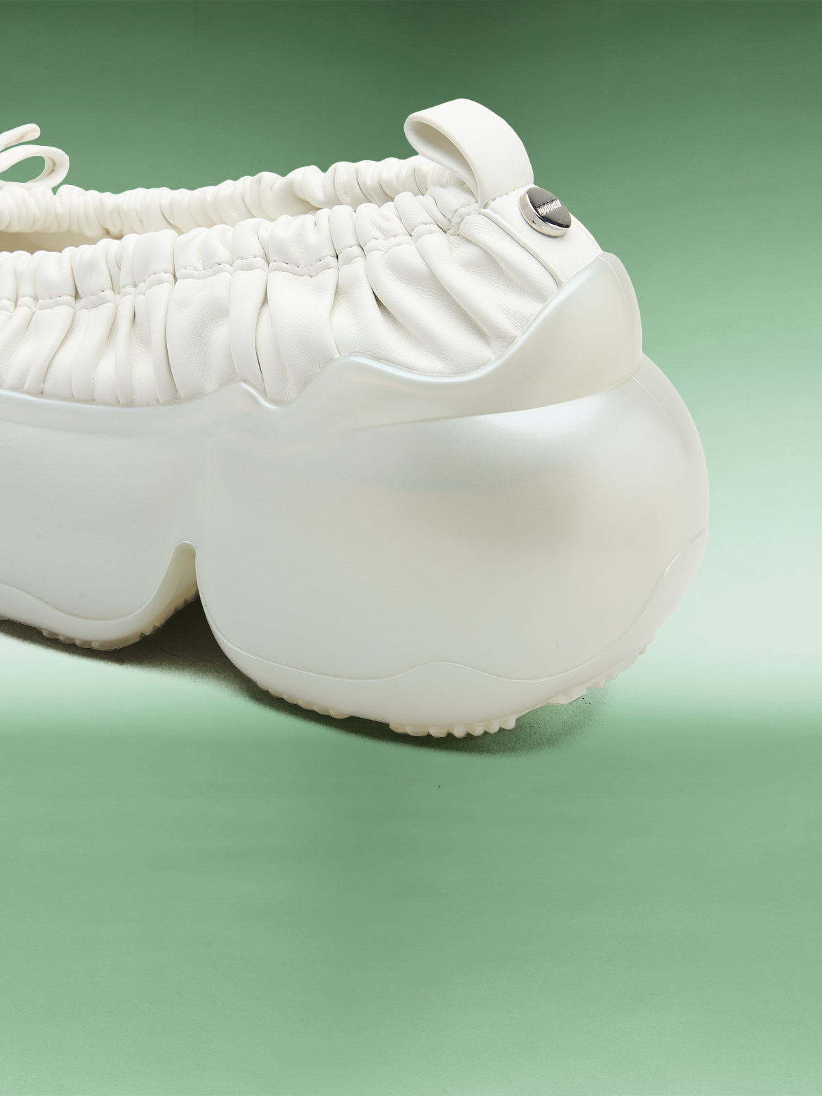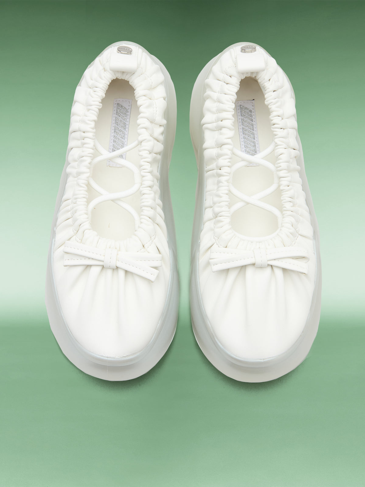 スポーティなひねりを加えた、くしゃくしゃのバレエ フラットシューズ。CINDYは、小さなリボンで甘く洗練された印象を与え、ふわふわのソールでエッジの効いたタッチをプラスします。