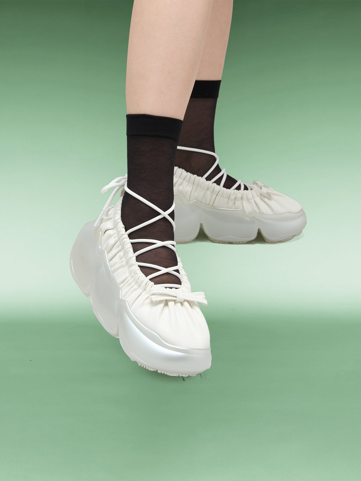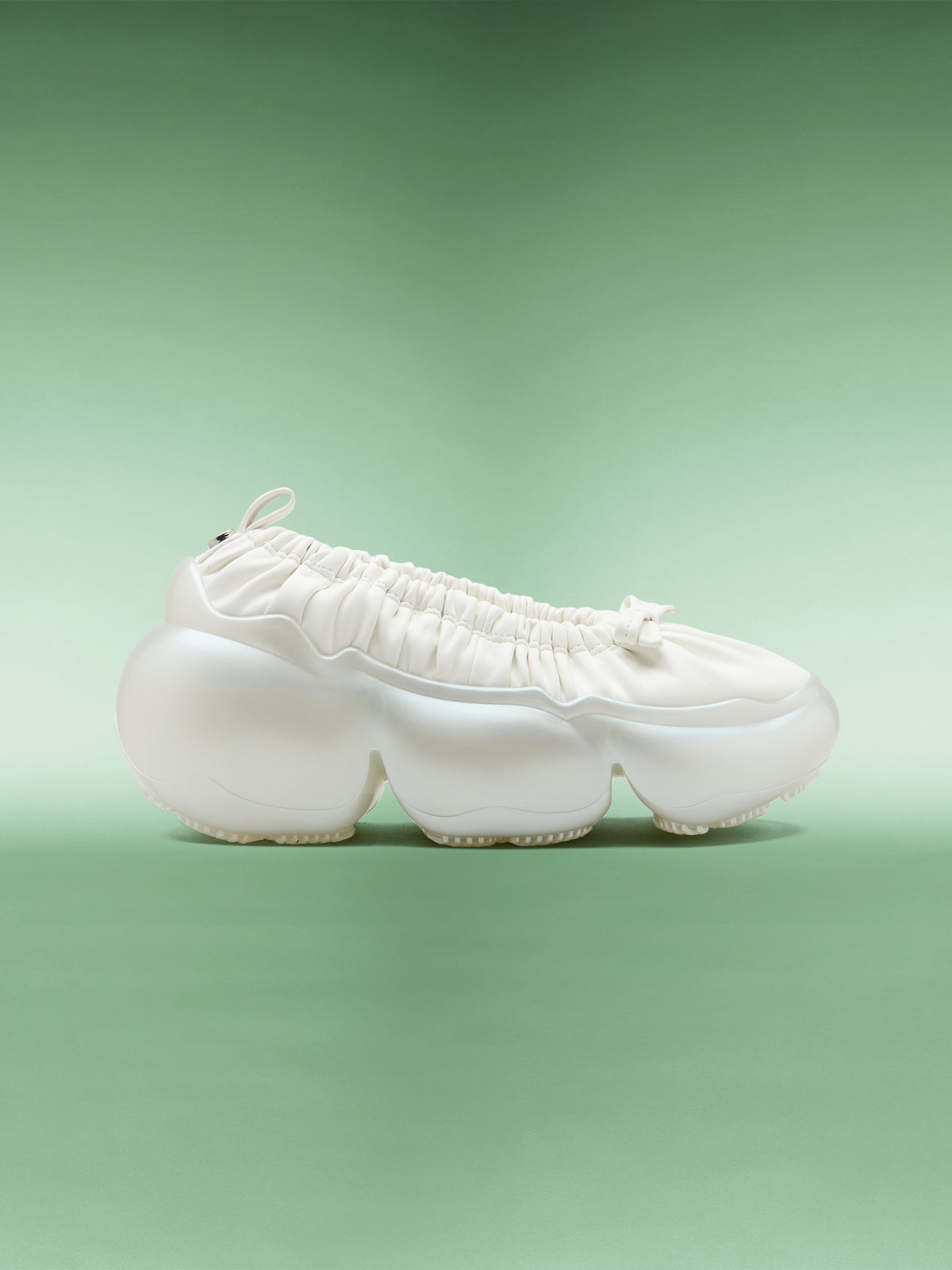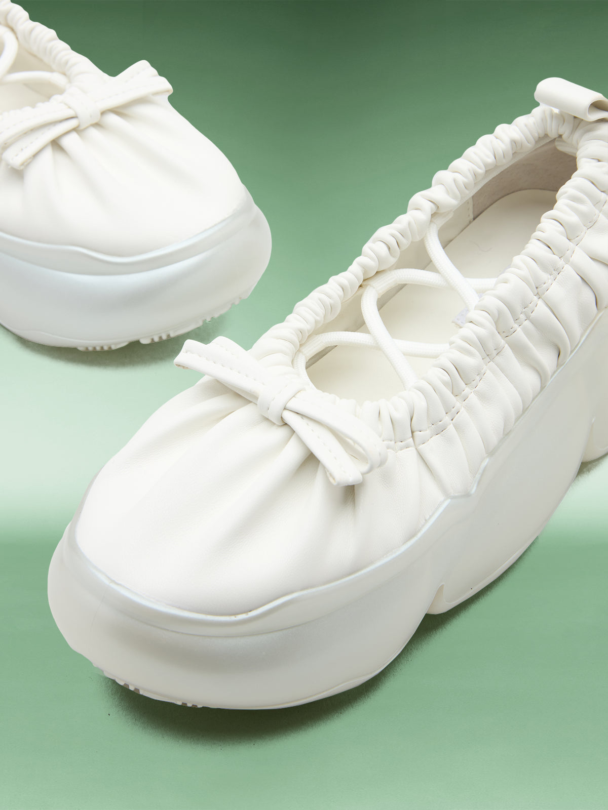 スポーティなひねりを加えた、くしゃくしゃのバレエ フラットシューズ。CINDYは、小さなリボンで甘く洗練された印象を与え、ふわふわのソールでエッジの効いたタッチをプラスします。