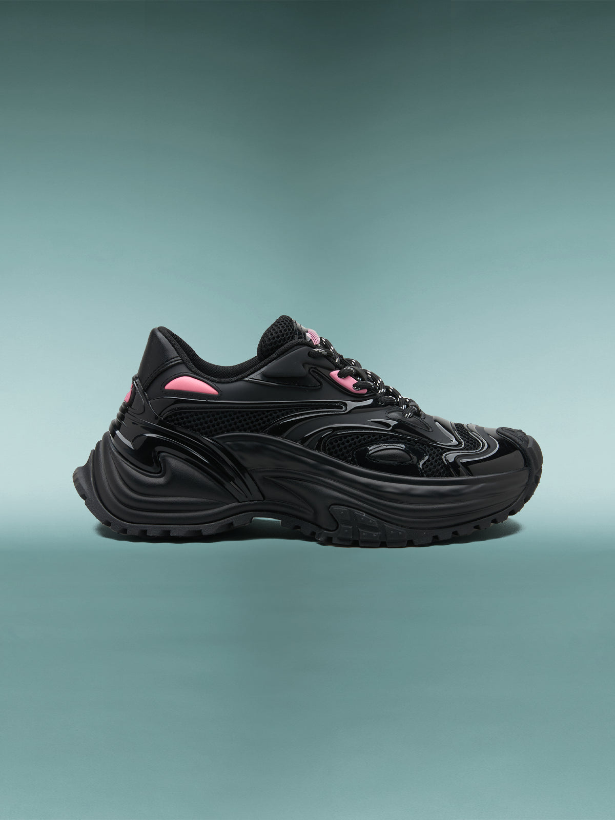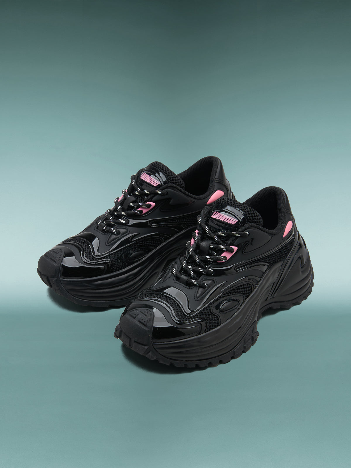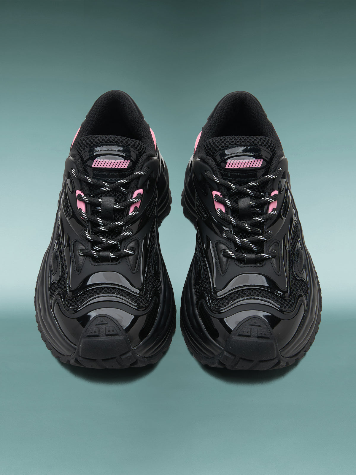 - かかと部分に3Dバブルエンボス加工のブランドロゴ