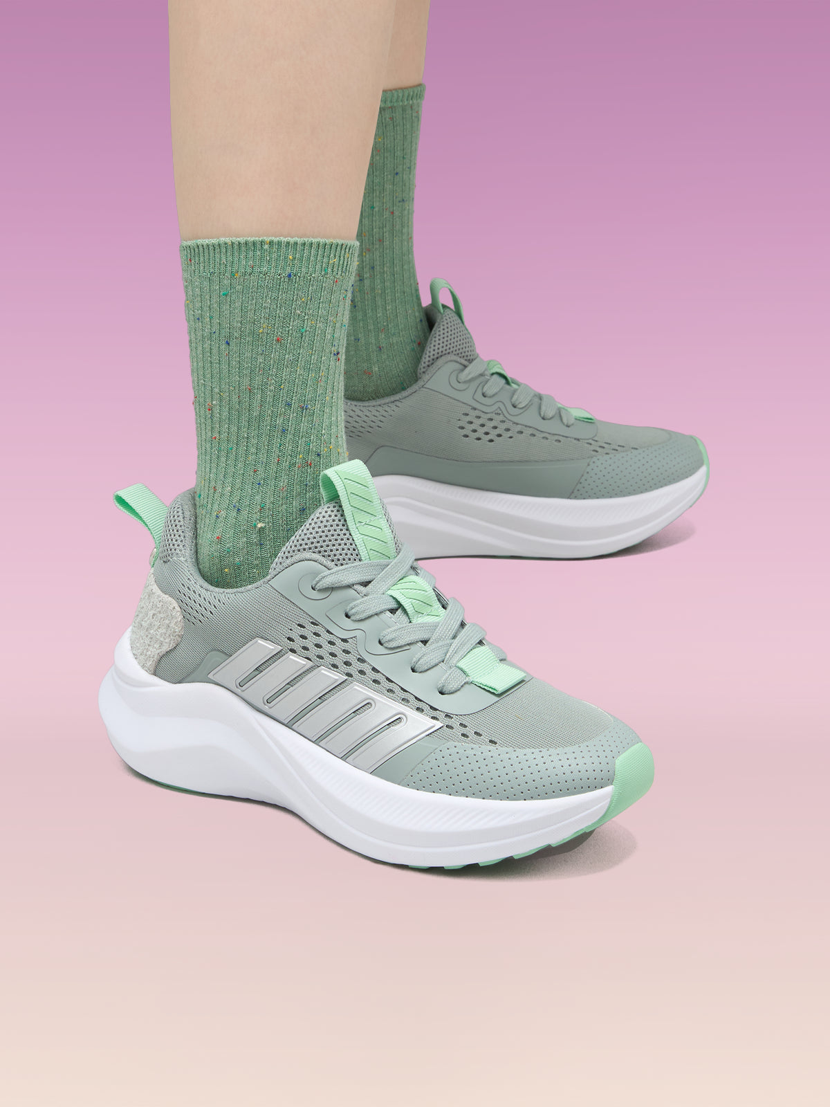 スポーツの日々に彩りを添えるクラシックなスニーカー、それが JINY です。通気性と伸縮性に優れたフライニット素材を快適なソールに使用したこのスニーカーは、あなたを最高の自分へと導きます。JINY を履いてランニングやジム通いをスタイリッシュに楽しみましょう。JINY はあなたを信頼しています。頑張れ、女の子!