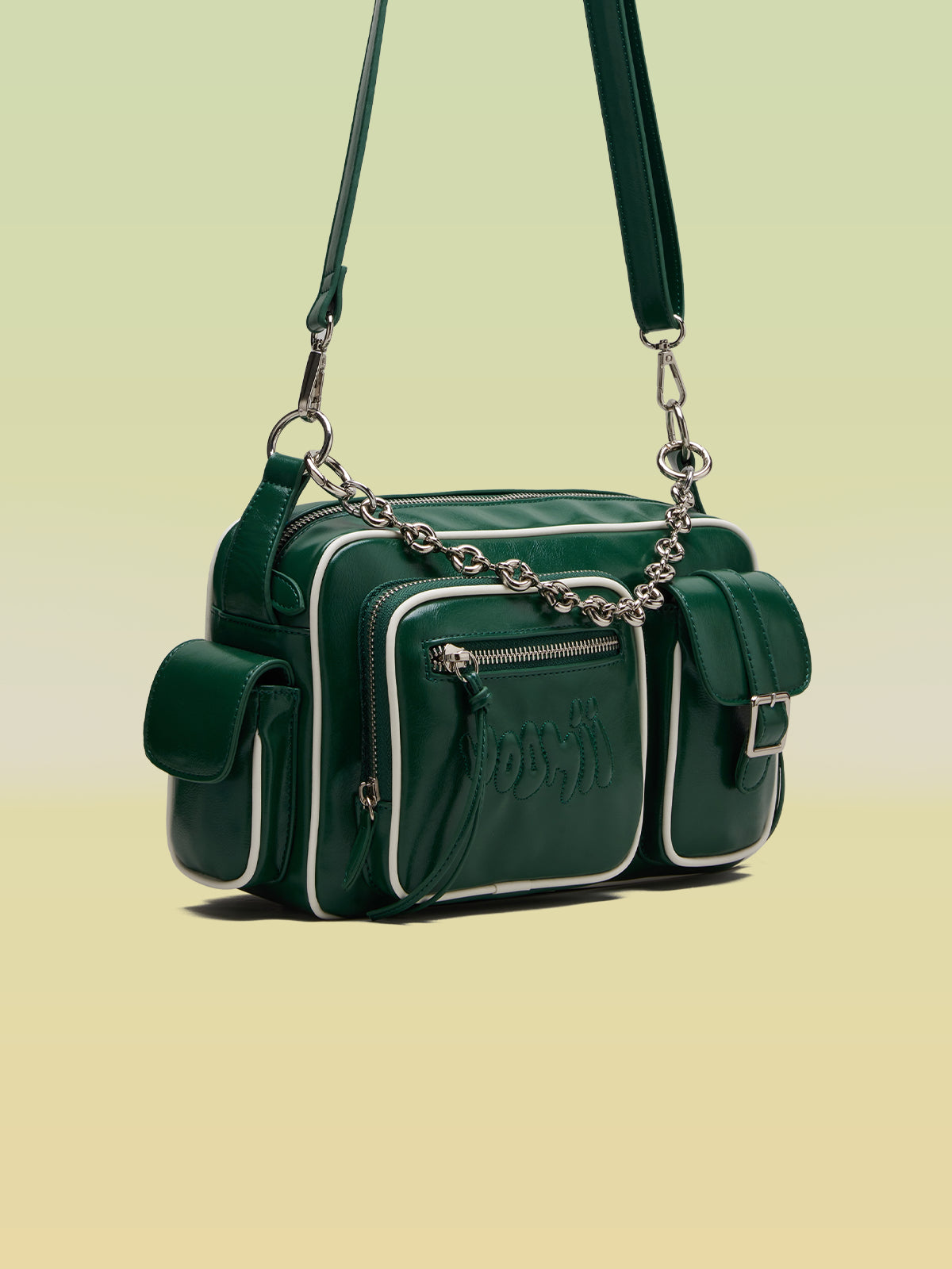 - 前面:フラップポケット1つ、ジッパーポケット1つ