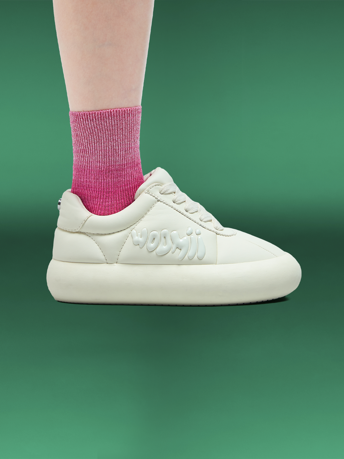 丸みを帯びたソールとふっくらとしたアッパーが魅力の、ポップで愛らしいトレーナー。