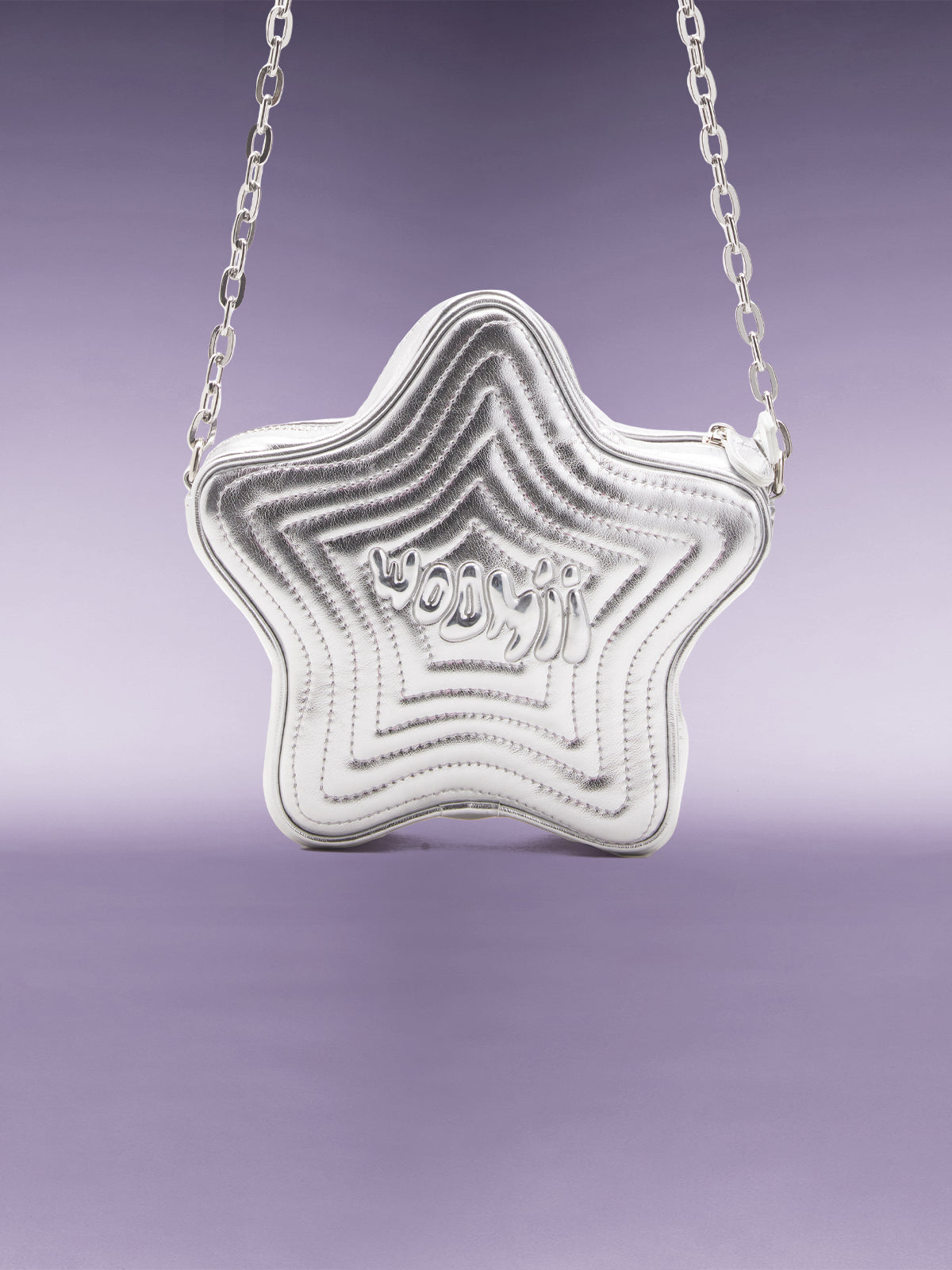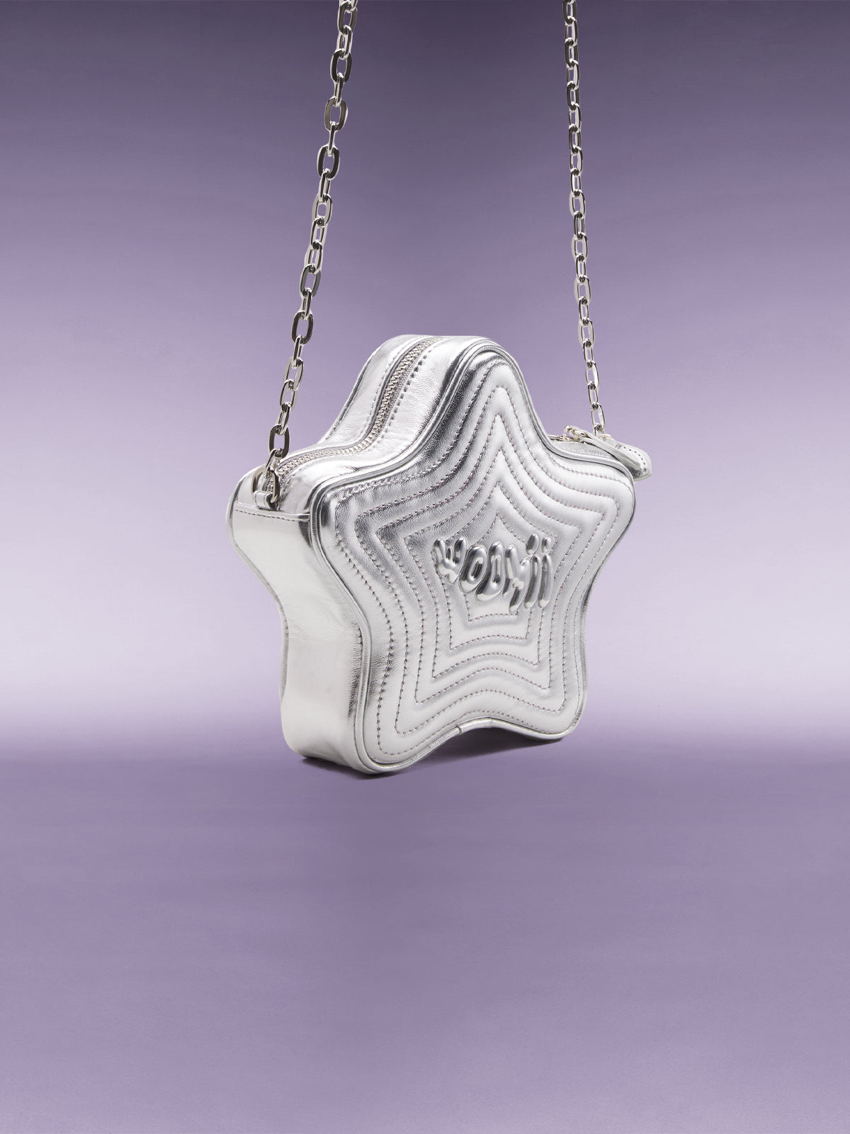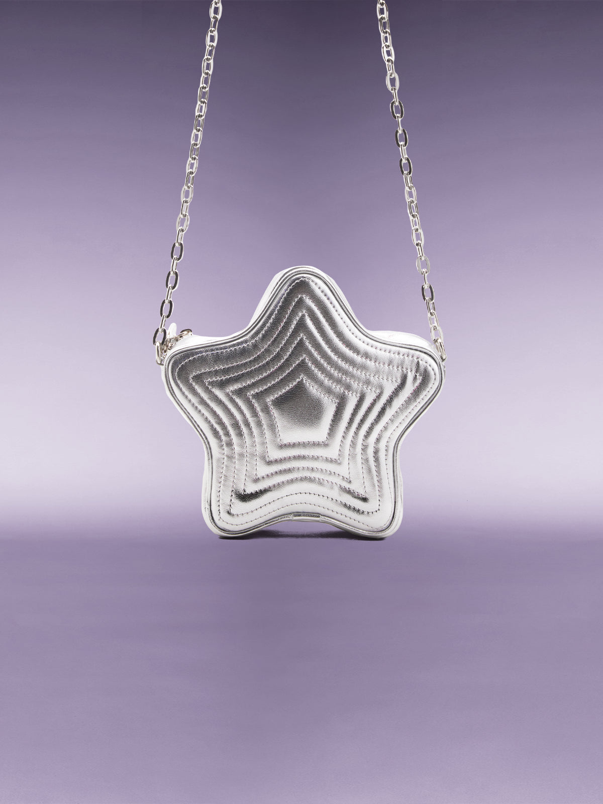 「私はスター!」キラと一緒に、空にきらめく星のように明るく輝きましょう。ほとんどの携帯電話、小さな財布やカードホルダー、鍵など、両手が空くものなら何でも入ります。多層キルティングのディテールが施されたキラは、あなたの一日を彩る最もキュートなステートメントピースです。