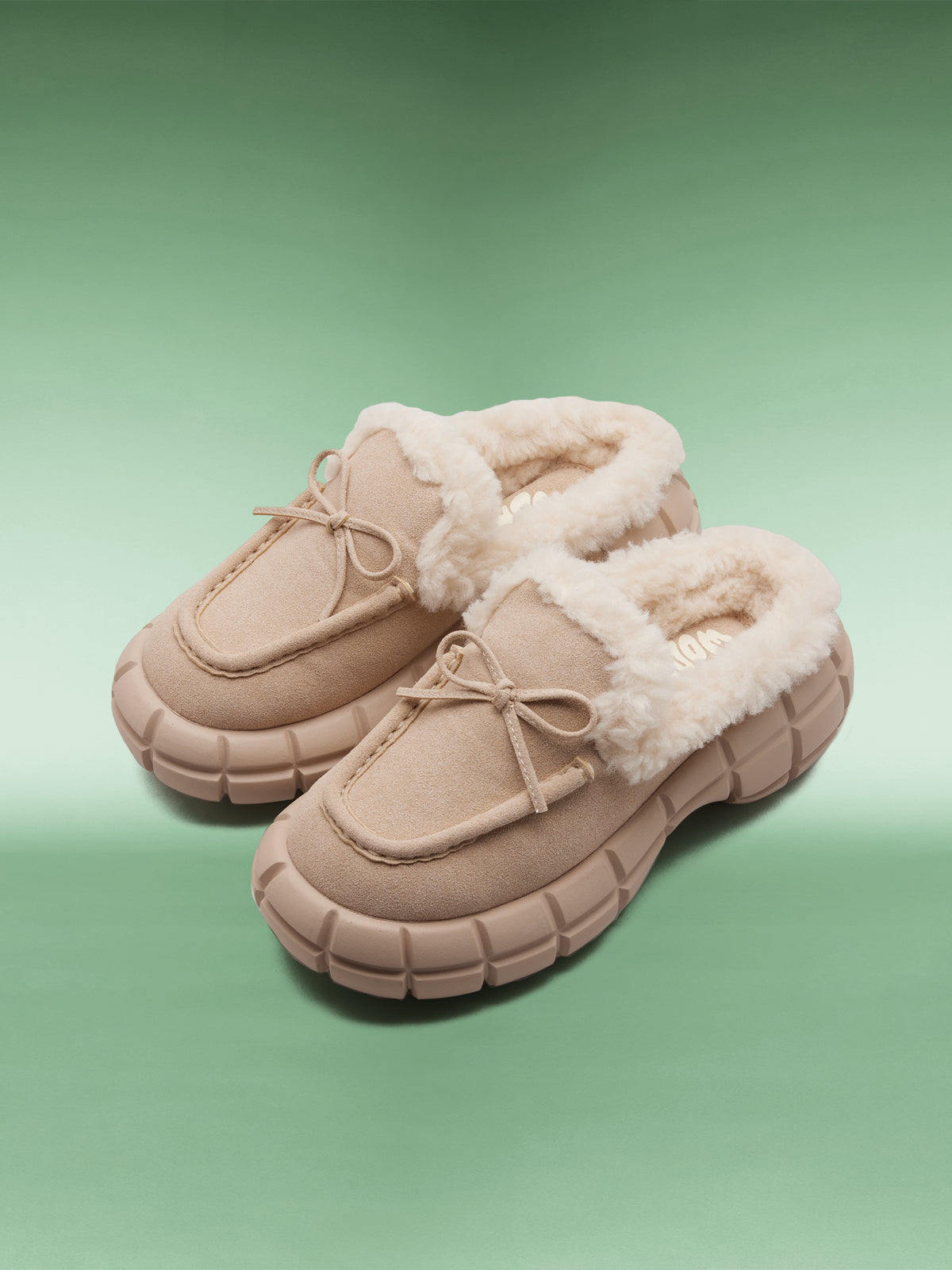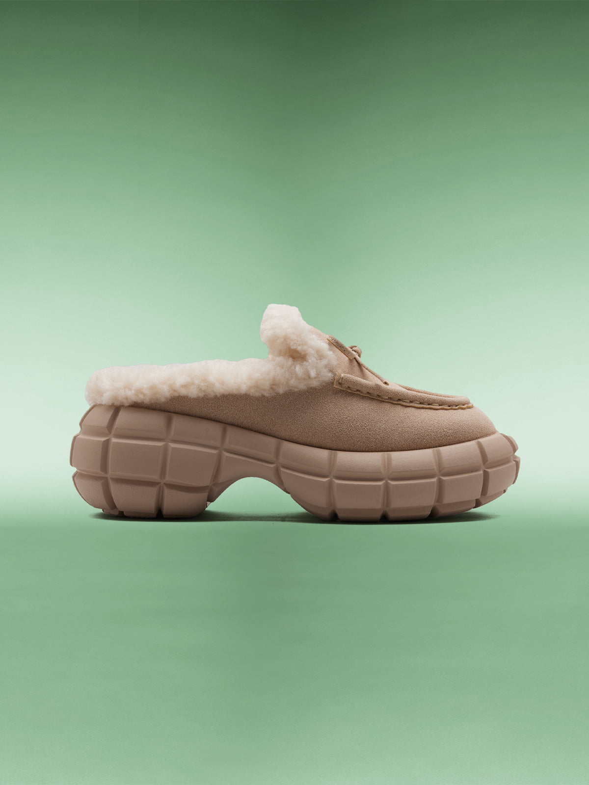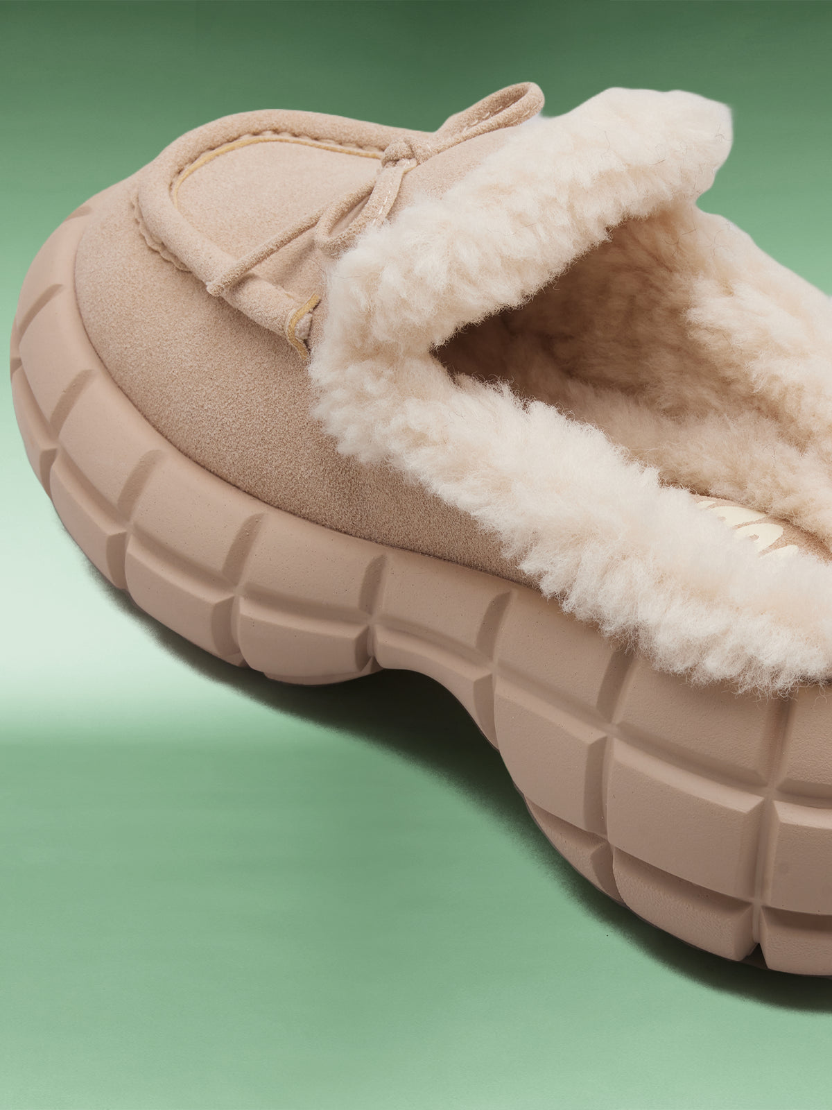 LUCIA ミュールを履けば、究極の快適キュートなスタイルが完成します。雲のように柔らかいフェイクファーの裏地が付いたこのスリッポンは、一日中くつろぐのに最適で、忙しい冬の日でも楽に洗練されたスタイルを演出できます。
