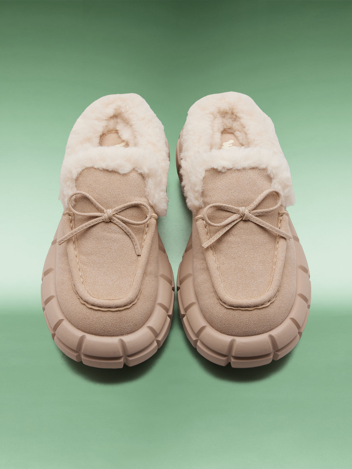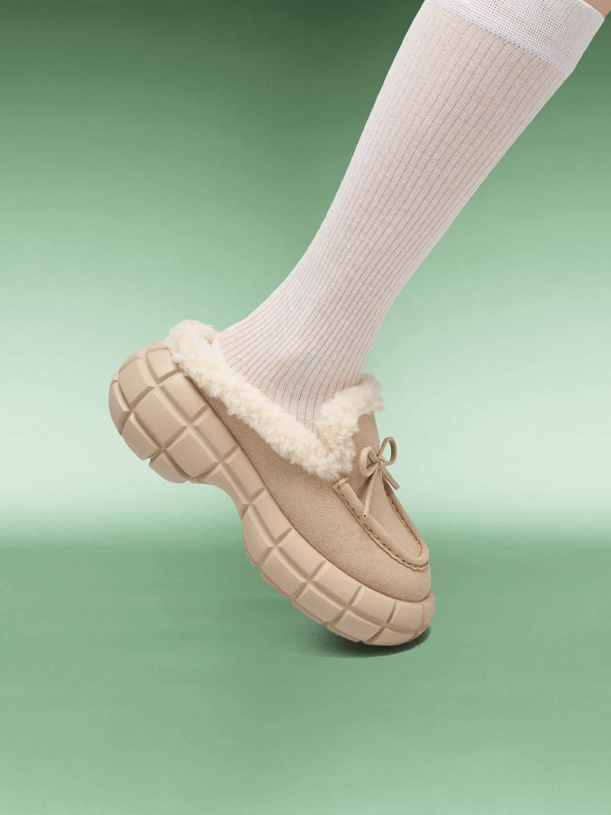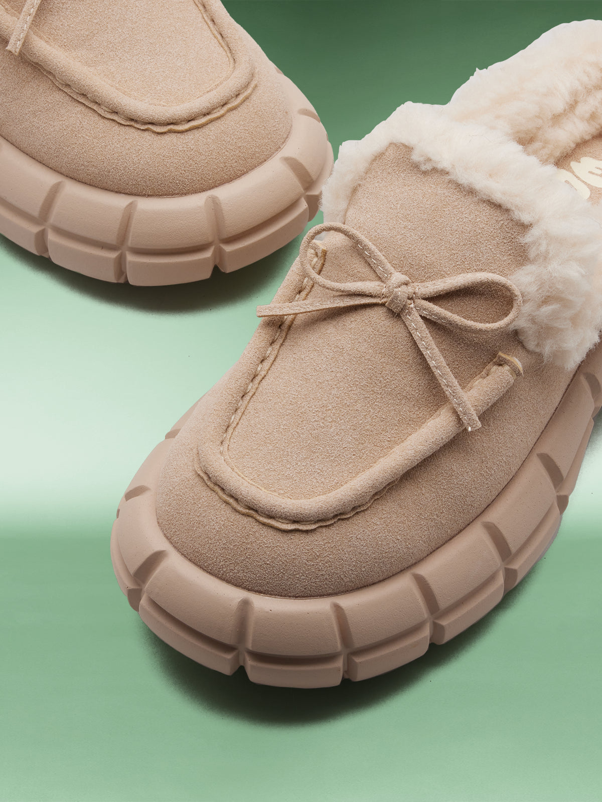 LUCIA ミュールを履けば、究極の快適キュートなスタイルが完成します。雲のように柔らかいフェイクファーの裏地が付いたこのスリッポンは、一日中くつろぐのに最適で、忙しい冬の日でも楽に洗練されたスタイルを演出できます。