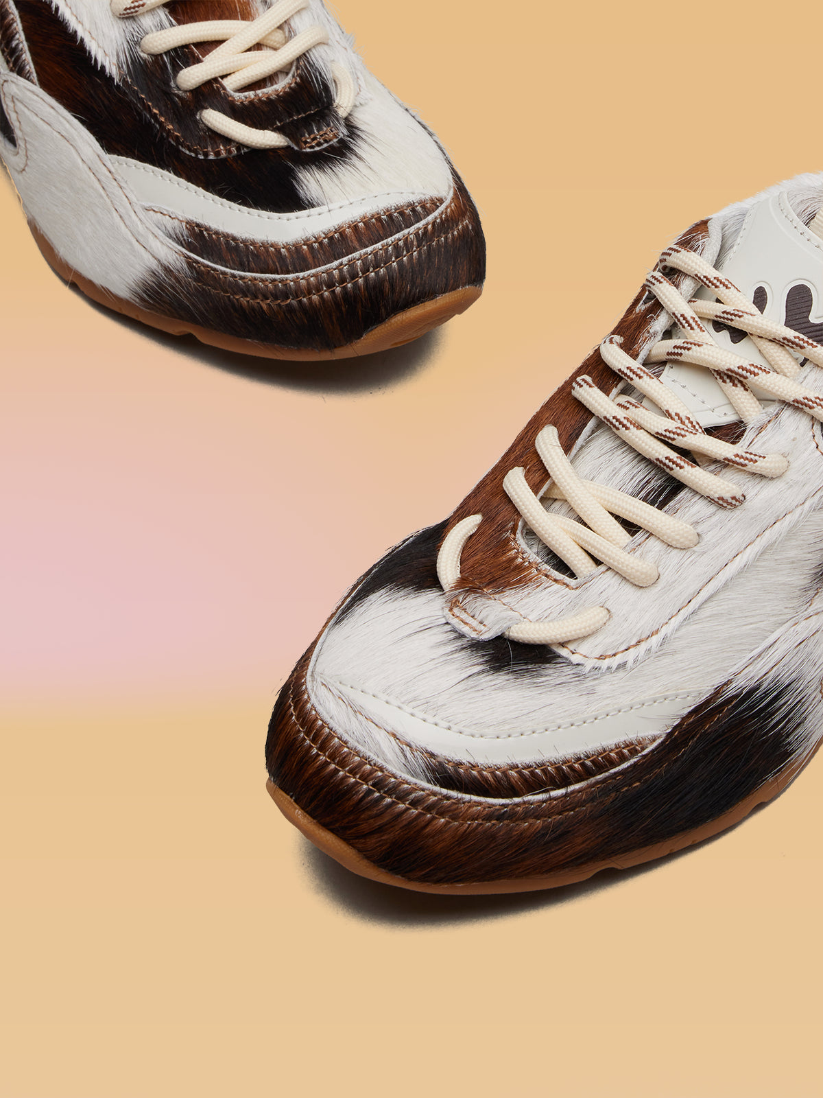 MAURINE は、クラシックなロープロファイル スニーカーをベースに、見逃せない遊び心のあるディテールと雰囲気をプラスしています。