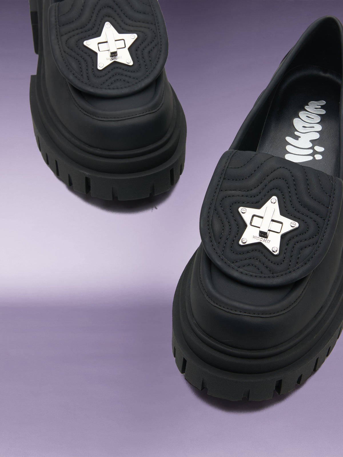 スター、それがあなたです!だからこそ、ワードローブにPENELOPEが必要なのです。WOOMIIのシグネチャーであるスターロックがアクセントになったこのプラットフォームオックスフォードで、あなたの世界を揺るがしましょう。