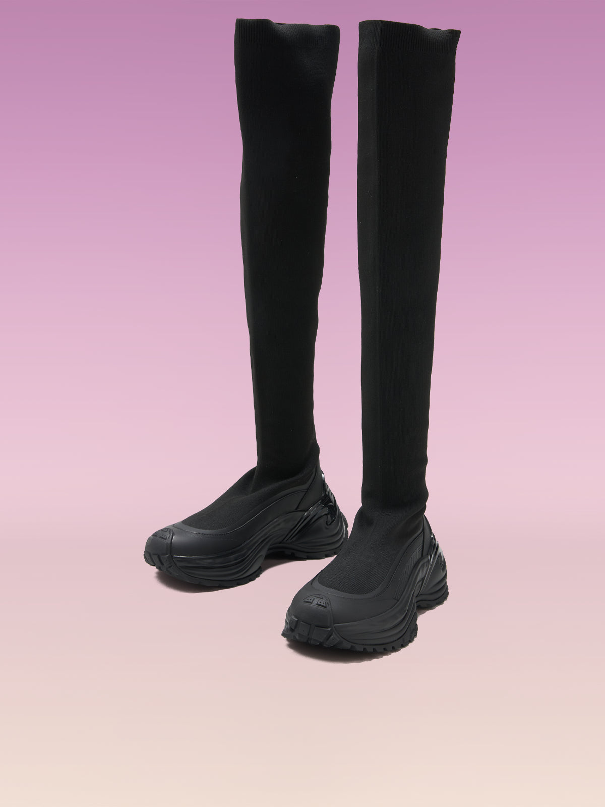 ROSALIA で印象に残る靴を作りましょう。このオーバーニー スニーカー ブーツは、快適さとセンスを兼ね備え、注目を集めるスタイルを実現します。ぴったりとした伸縮性のあるシャフトが第二の皮膚のように脚を包み込み、どんな体型にもぴったりフィットします。ファッションと機能性が融合したこのブーツを気に入らないわけがありません。