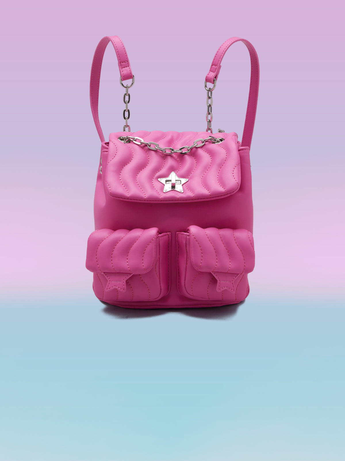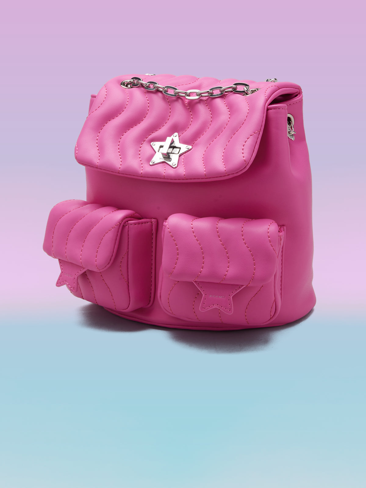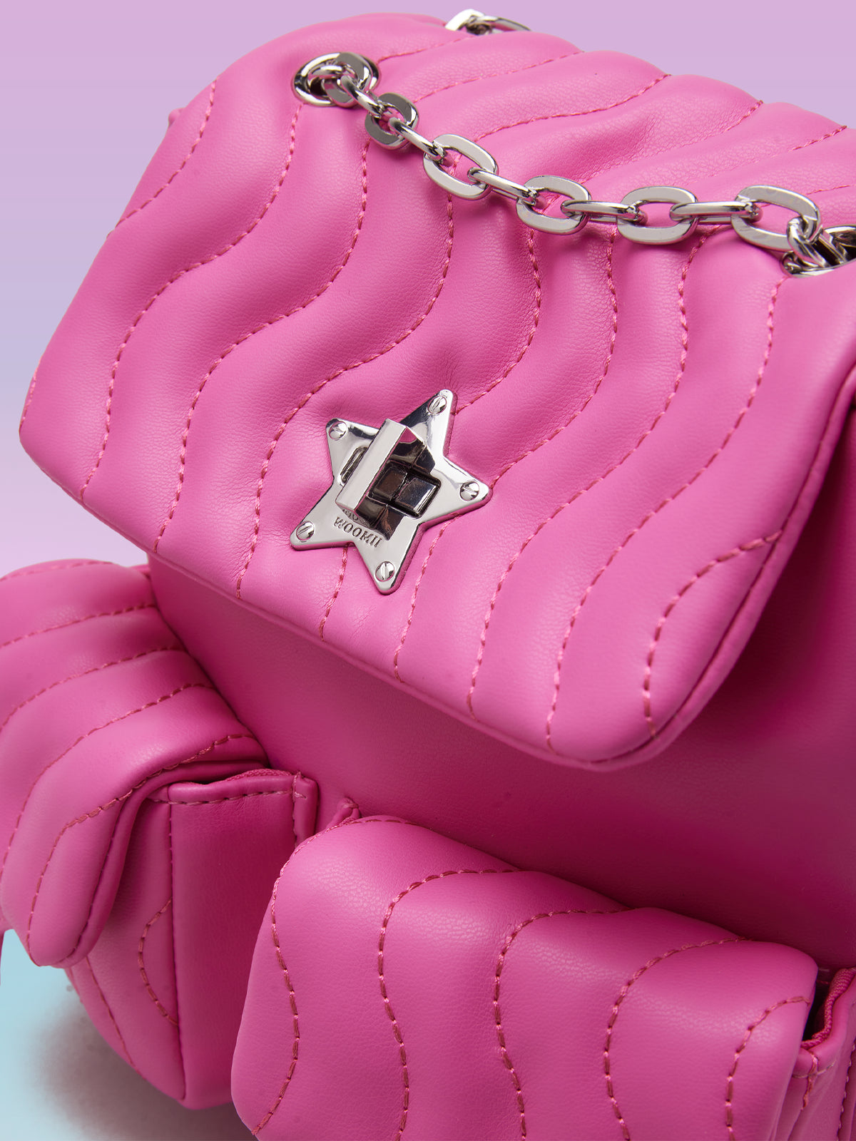 - チェーンリンクのトップハンドルと調節可能なショルダーストラップにより、バックパック、ショルダーバッグ、手で持つ3つのスタイルを実現