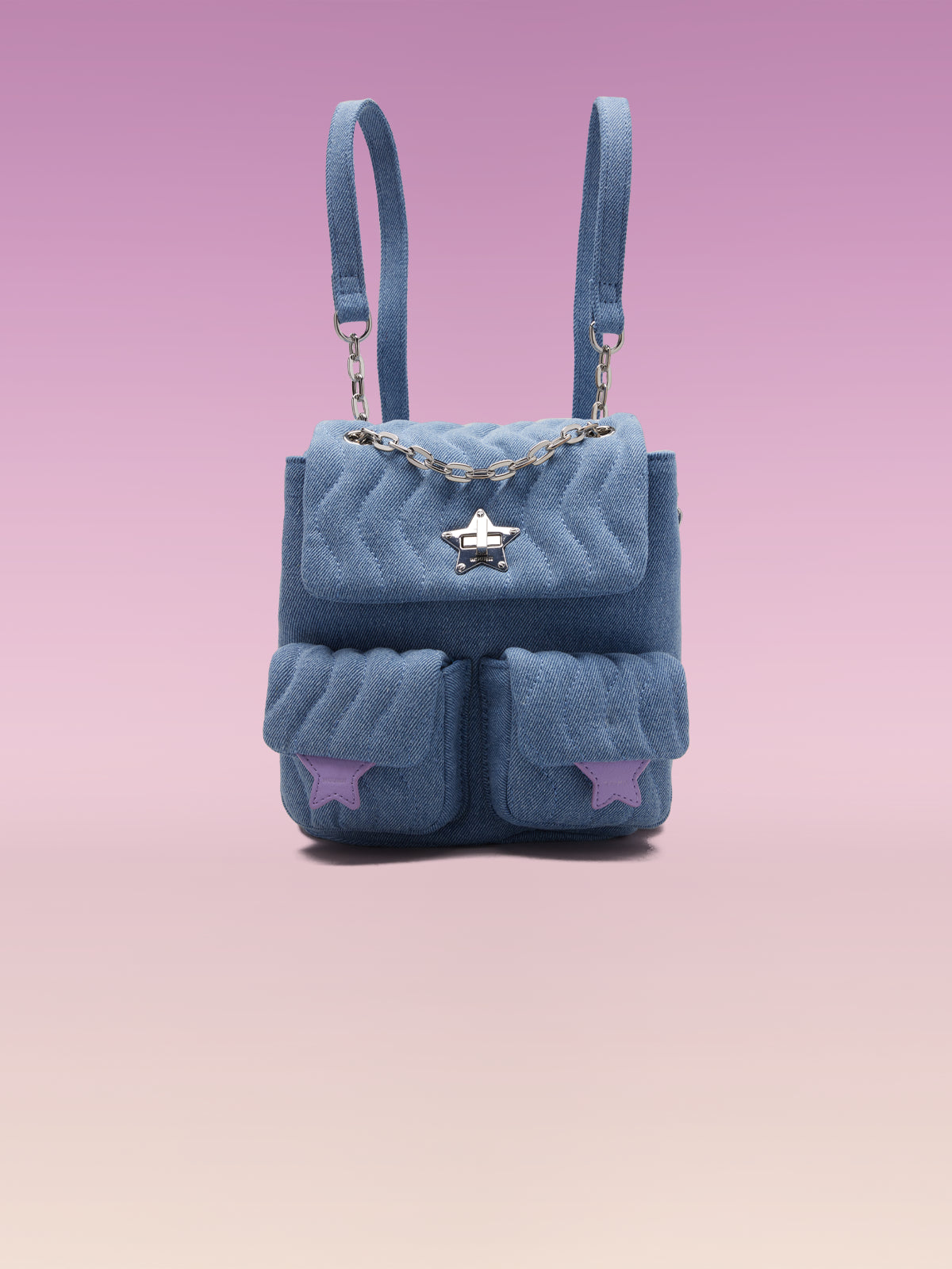 - チェーンリンクのトップハンドルと調節可能なショルダーストラップにより、バックパック、ショルダーバッグ、手で持つ3つのスタイルを実現