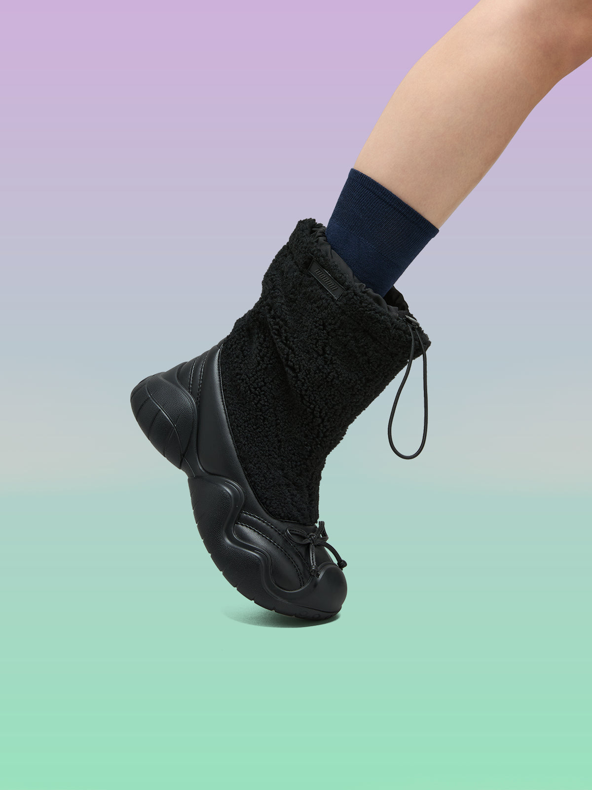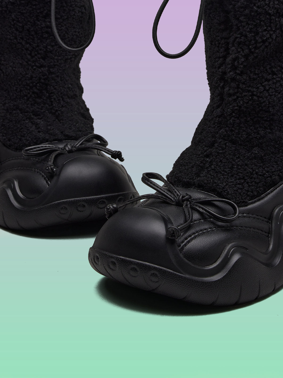 AMBER just got a cozy upgrade, with soft faux shearling and an adjustable drawstring shaft.