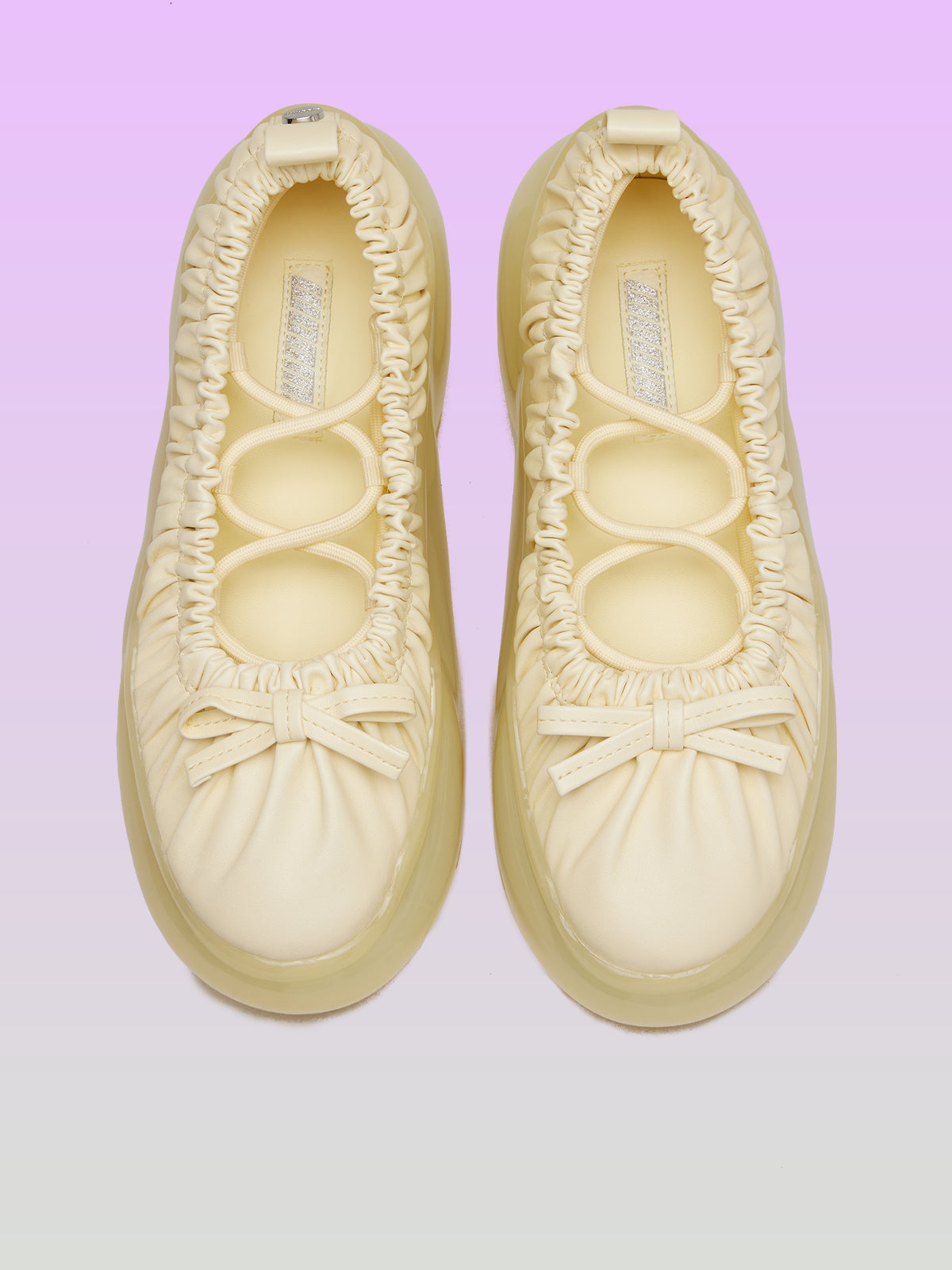 CINDY is our ballet flat with bubble sole lift and delicate bow detail. She’s feminine, playful, and just a little bit edgy.
