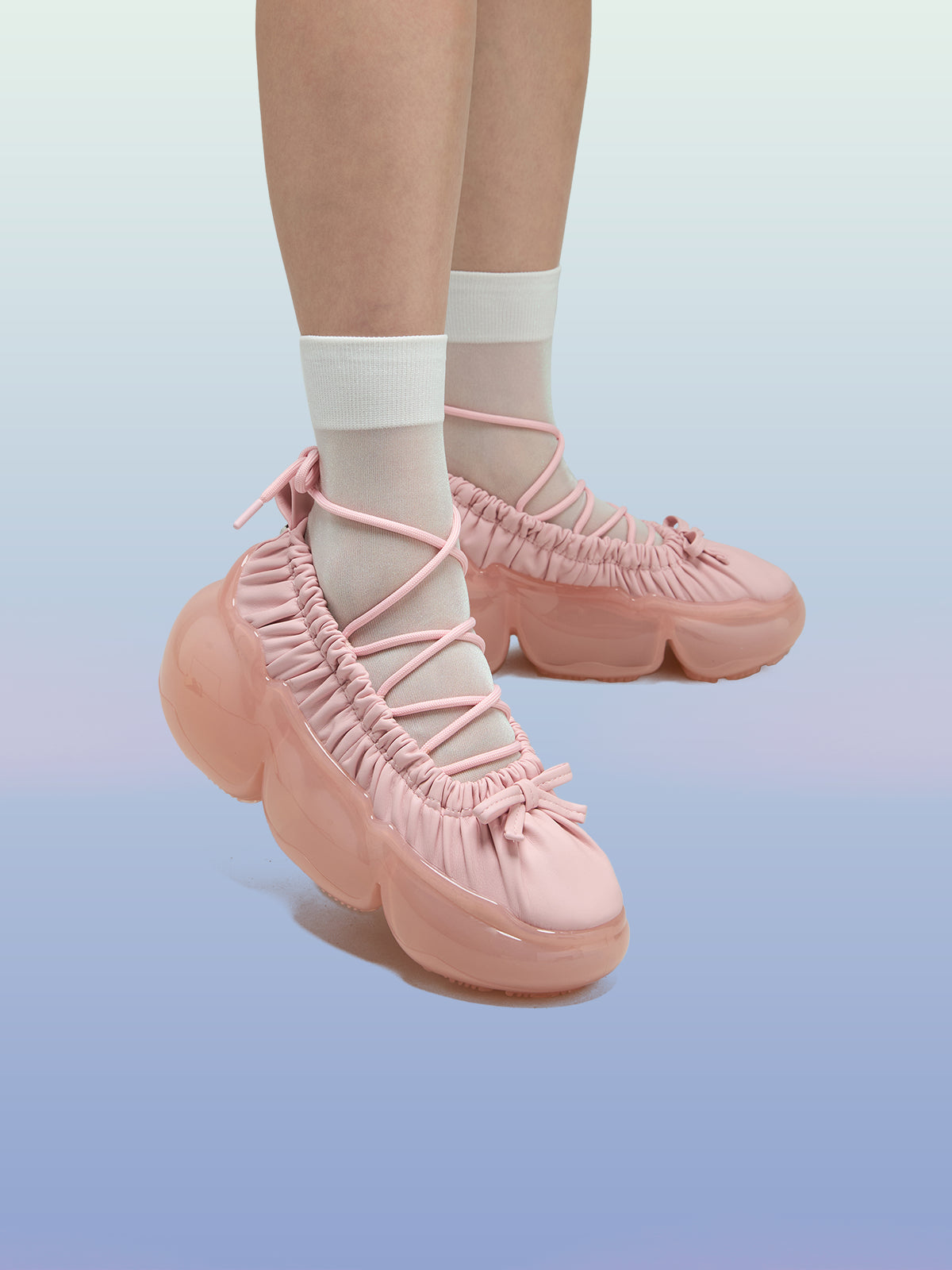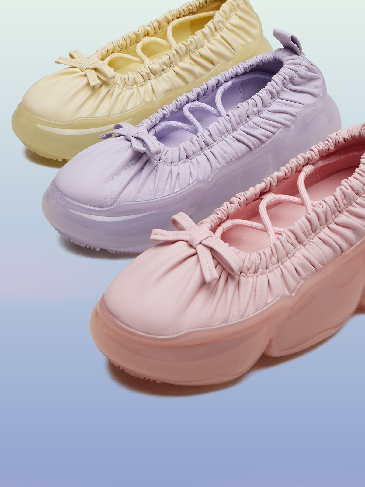 CINDY is our ballet flat with bubble sole lift and delicate bow detail. She’s feminine, playful, and just a little bit edgy.