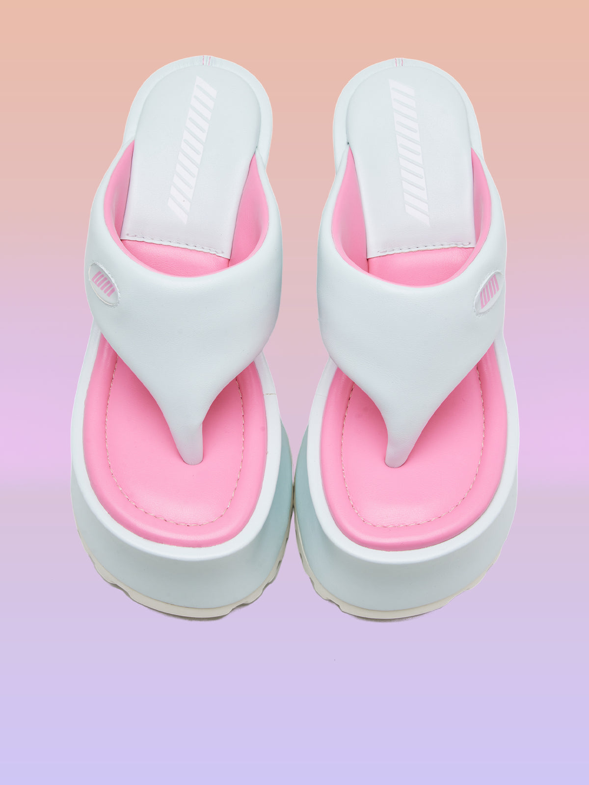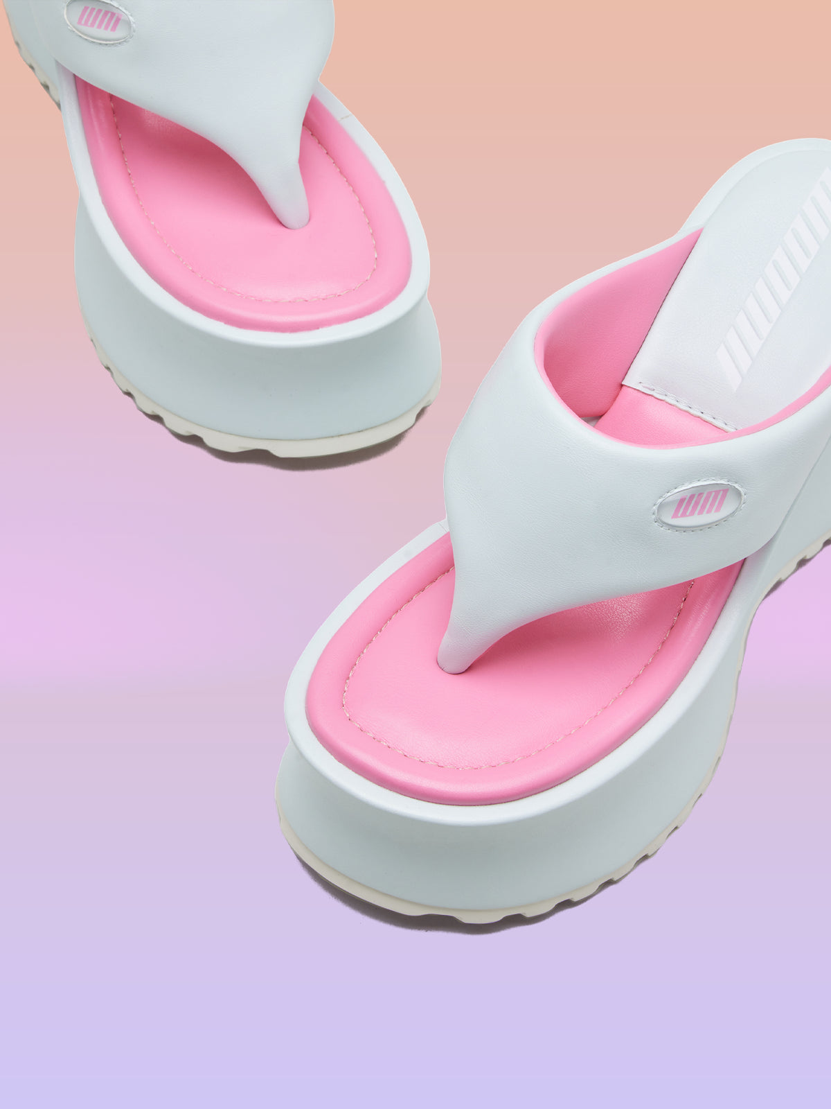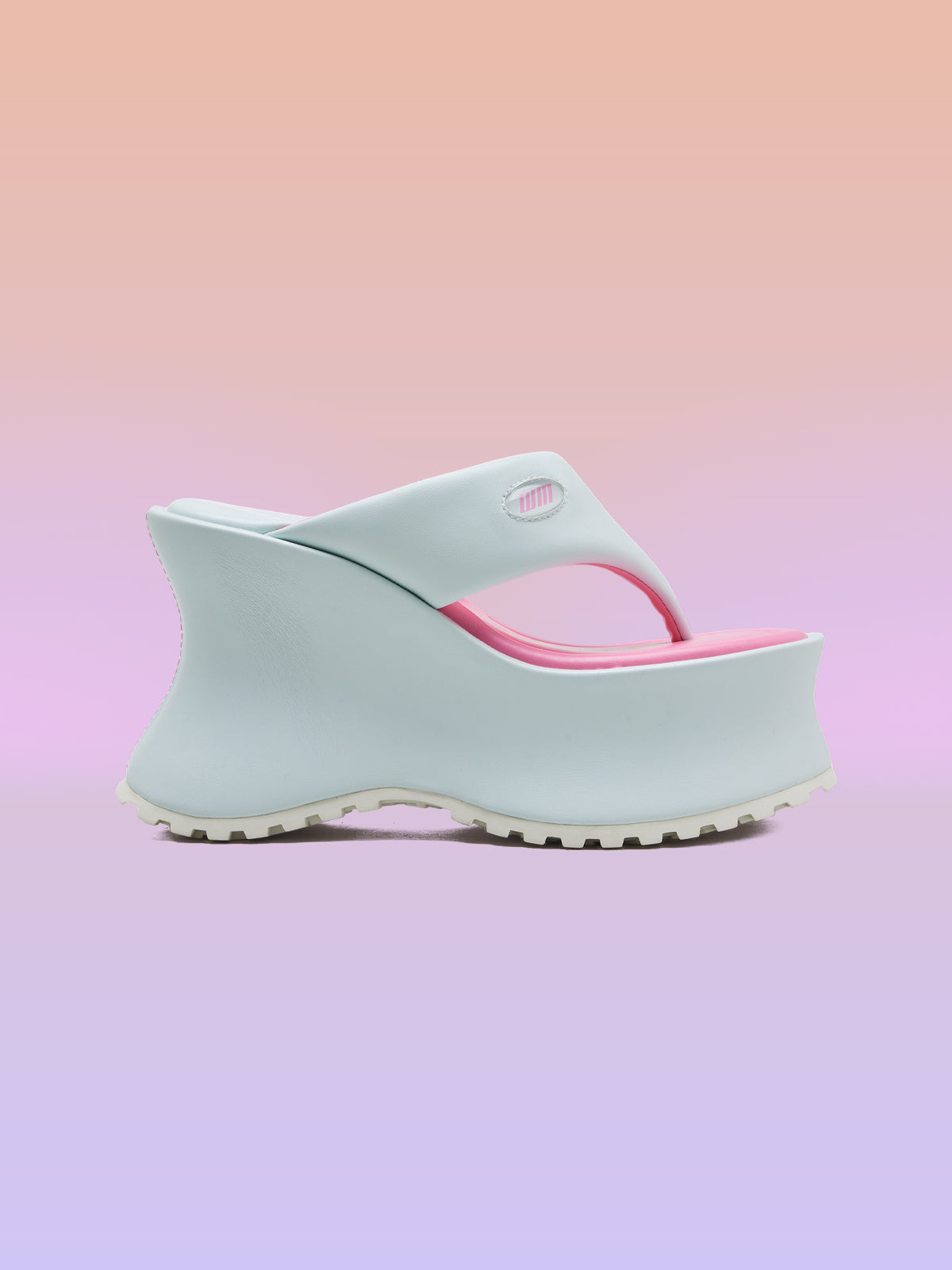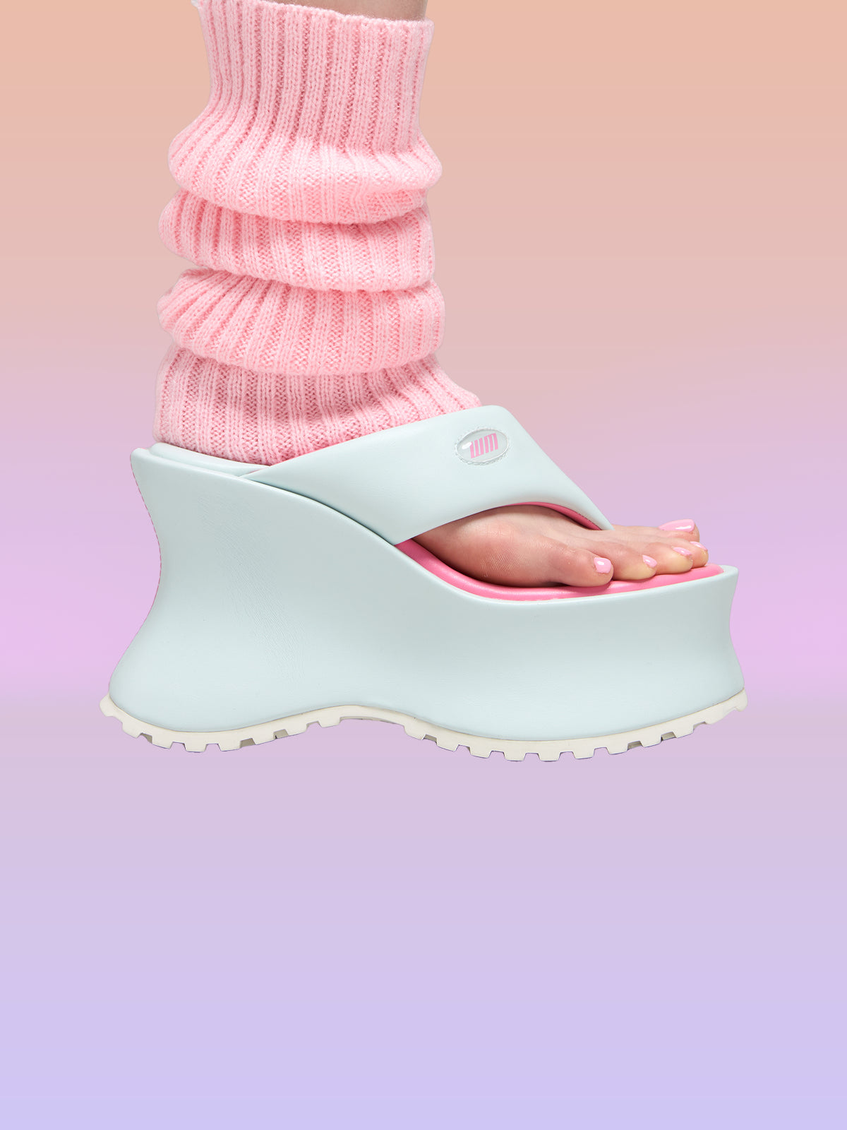CLEO’s padded flip-flop look brings serious Y2K nostalgia. Wear her with cargo pants or low-rise jeans and a halter.