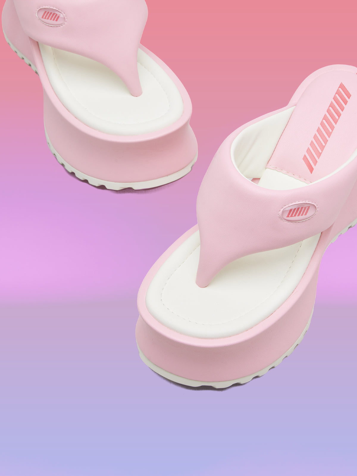 CLEO’s padded flip-flop look brings serious Y2K nostalgia. Wear her with cargo pants or low-rise jeans and a halter.