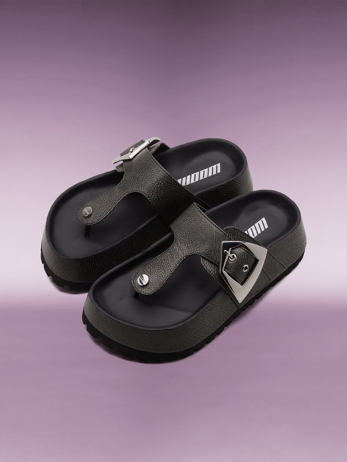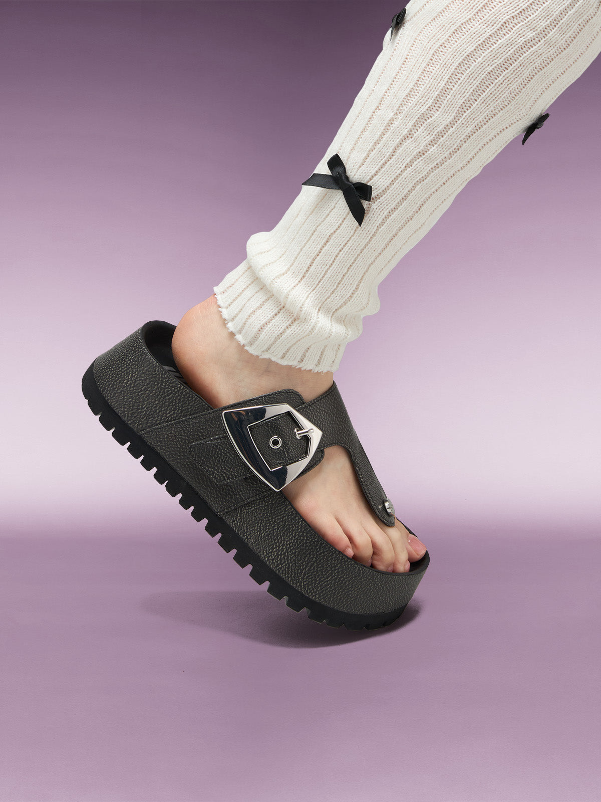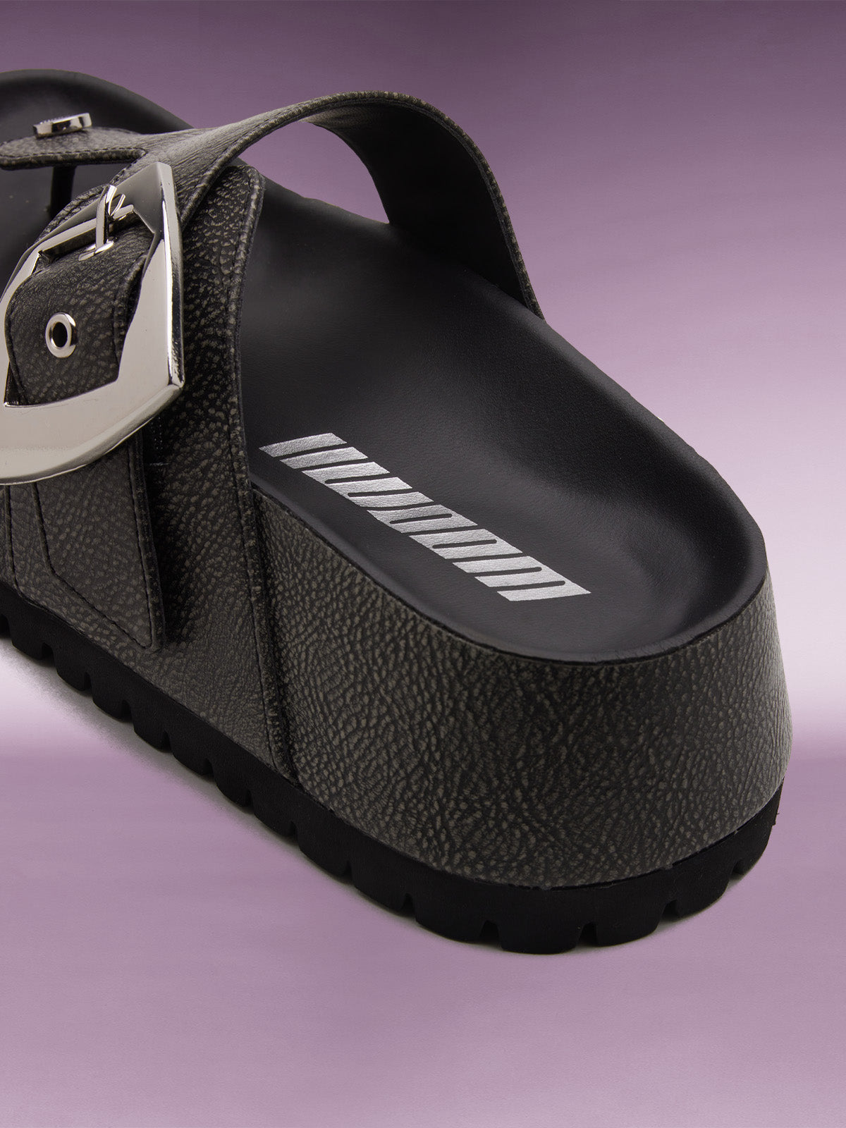 - Adjustable chunky buckle with metal eyelets